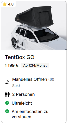 Wir wollen, dass du dich von Anfang an bestens aufgehoben fühlst – und sicher weißt, dass du dein Dachzelt nirgendwo günstiger bekommen würdest.